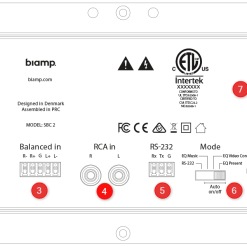 Переключатель Mode выбирает между режимом управления по RS-232 и режимом автоматического включения/выключения. В положении переключателя Mode в режиме Auto on/off выбирается одна из трех предустановок эквалайзера. Предустановки эквалайзера можно выбирать и в режиме RS-232 с помощью команд. Это следующие предустановки: “Видеоконференция”, “Музыка” и “Презентация”.