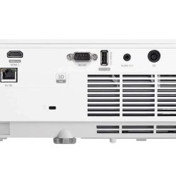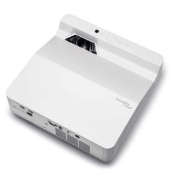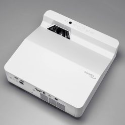 Ультракороткофокусный объектив этого проектора позволяет проецировать изображение размером 100″ всего с расстояния полуметра. Это позволяет размещать проектор ближе к стене, нивелируя при этом тень. Несколько входов, питание от USB и встроенный динамик обеспечивают простую настройку, в частности они отлично подходят для подключения к ноутбуку, ПК или проигрывателю Blu-ray для получения четких изображений и чистого звука. Вы даже можете подключить адаптер HDMI для беспроводных презентаций.