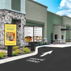 Увеличивайте доход, повышайте объем заказов и средний чек с помощью цифровых уличных рекламных экранов и меню-бордов! Всепогодные уличные стойки разработаны для использования совместно с ультраяркими дисплеями от Peerless-AV, Samsung или LG размером 55″. Вандалоустойчивая конструкция позволяет надежно защитить установленное внутри оборудование, обеспечивая бесперебойную круглосуточную демонстрацию информации и рекламы.