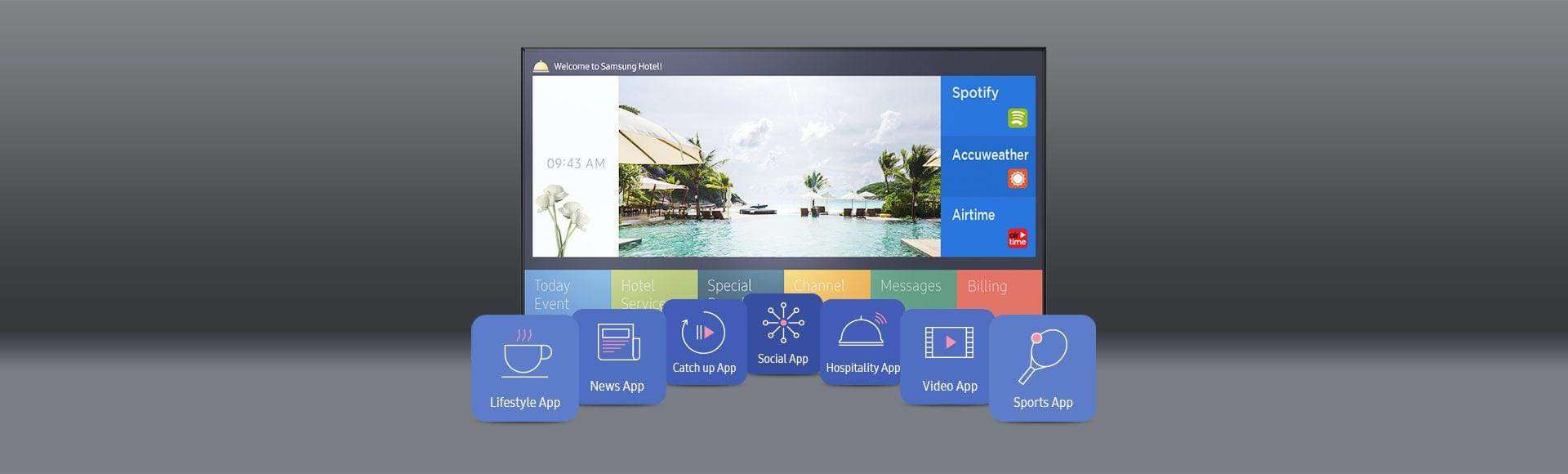 С LYNK REACH гостиницы могут радовать гостей такими же интерактивными развлечениями на телевизорах в номерах, которые они получают с помощью своих персональных устройств. Samsung предоставляет доступ к множеству приложений, открывая доступ не только к обычным телеканалам, но и к играм, социальным сетям или премиальному контенту.
